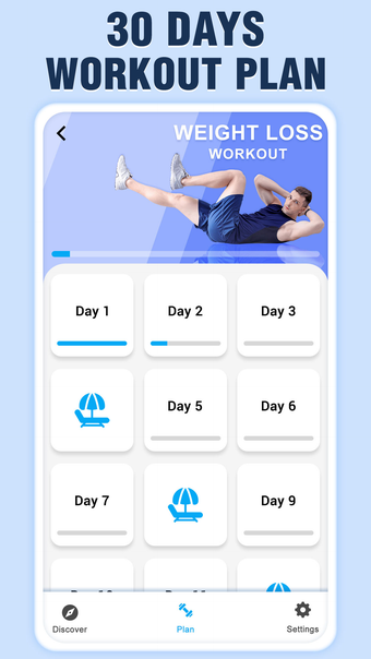 ワークアウトプランは、上部、下部、中部の腹筋のワークアウトに分かれており、効果的な減量エクササイズを含む日々のルーティンがあります。これにより、ユーザーは徐々にフィットネスレベルを上げ、特定の筋肉グループをターゲットにすることができます。腹筋や脚から胸や背中まで、このアプリは全身のエクササイズを提供します。
